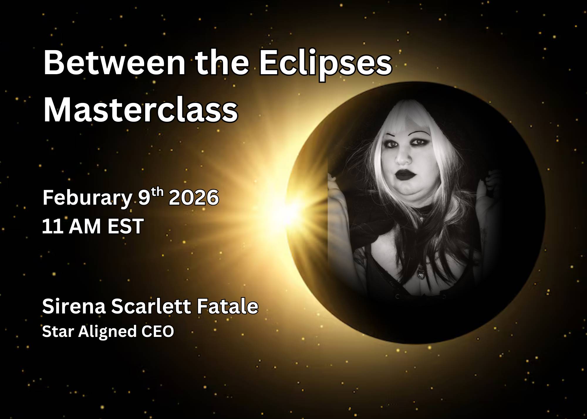 Join Sirena Scarlett Fatale on February 6, 2026 for Between the Eclipses, a masterclass exploring every eclipse of 2026 and what they’re actually activating beneath the surface. This is a grounded, myth-free breakdown without social-media hysteria or fear-based astrology.